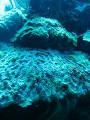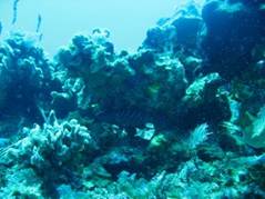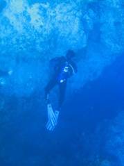 Our Second Dive: After lunch, the boat picked up anchor and dropped us off to do a drift dive off the other end of Rum Cay. Dan, Chris & I jumped off the back of the boat and quickly descended to about 130’ for our first wall dive. The sights were spectacular and we were so excited about the ease of the preparation.